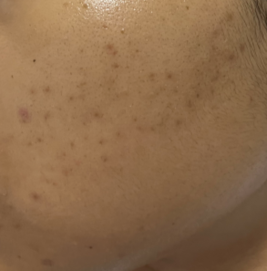 大きなニキビはできなくなり、肌がとても綺麗になった。コンシーラーで隠れるくらいまで色素沈着も薄くなった。朝夜ビタミンが入ってるパックを欠かさず行ったが、鍼をした後はより浸透力が感じられる。気になる毛穴詰まりもほとんどなかった。3タームの内3/4回は、色素沈着を除いて気になるニキビはほとんどなかった。